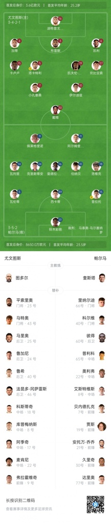 08月25日讯 意甲第1轮 尤文图斯主场迎战帕尔马,赛前首发名单公布。